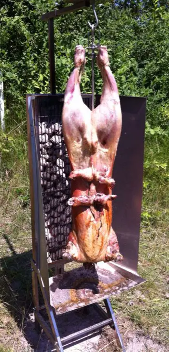 Ce modèle est le même que son petit frère gril vertical mais avec un bac à charbon plus haut. Hauteur 80 cm. il est dorénavant possible de cuire des petites bêtes. (agneau, cabri, petit cochon, etc.)